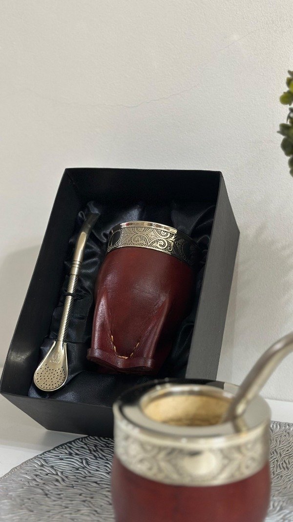 Descubrí la elegancia de nuestras tradiciones con este exclusivo Mate Imperial, elaborado en calabaza de primera calidad, forrado en fino cuero marrón y con detalles en alpaca que realzan su estilo único. Ideal para los amantes del mate que valoran la autenticidad y la estética.