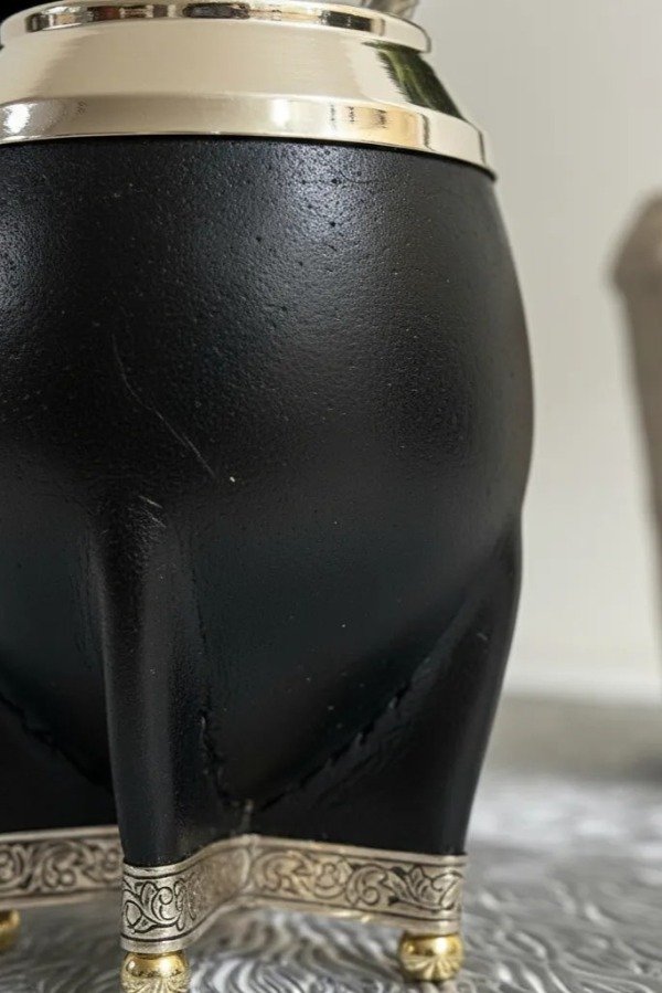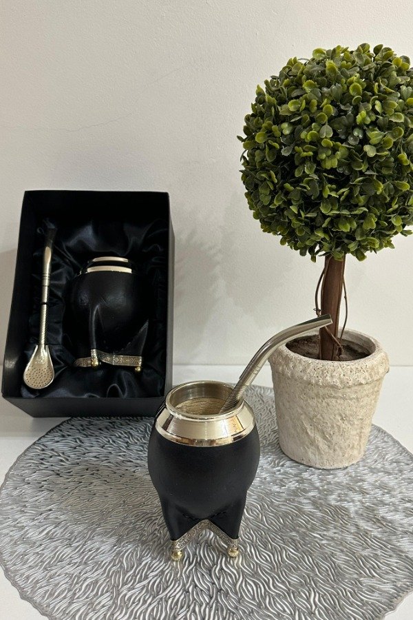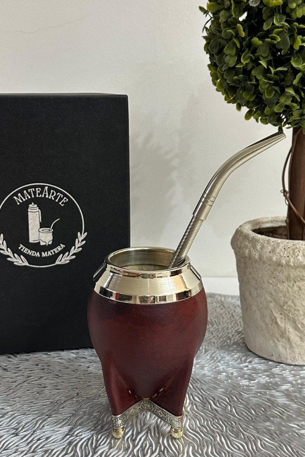 Clásico y elegante, este mate estilo torpedo está hecho con calabaza seleccionada, decorado con una base de alpaca que le brinda durabilidad y un brillo distintivo. Las pelotitas de bronce le suman un toque artesanal y único, ideal para quienes disfrutan del buen mate con estilo.