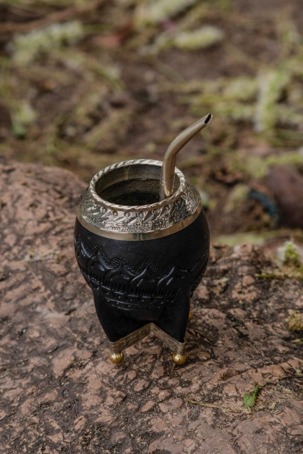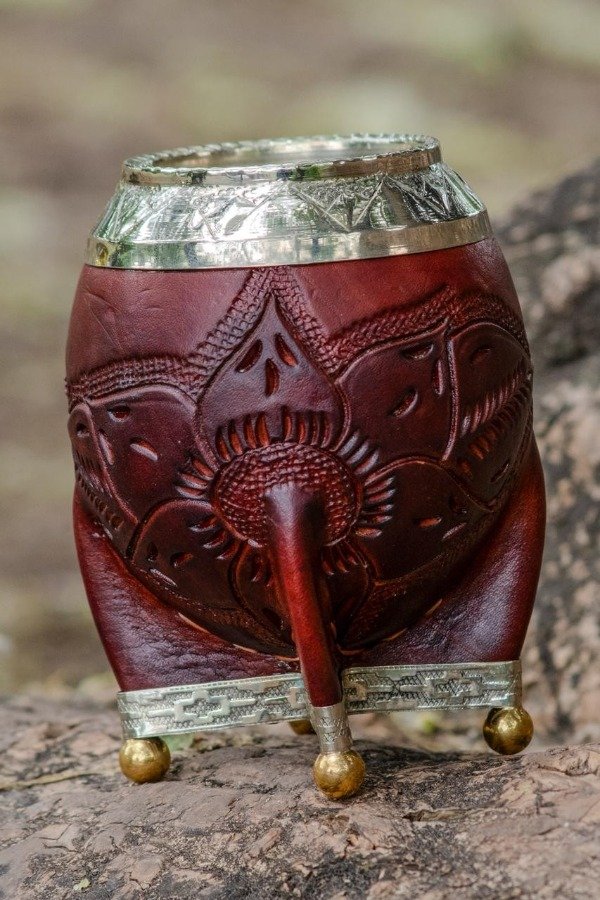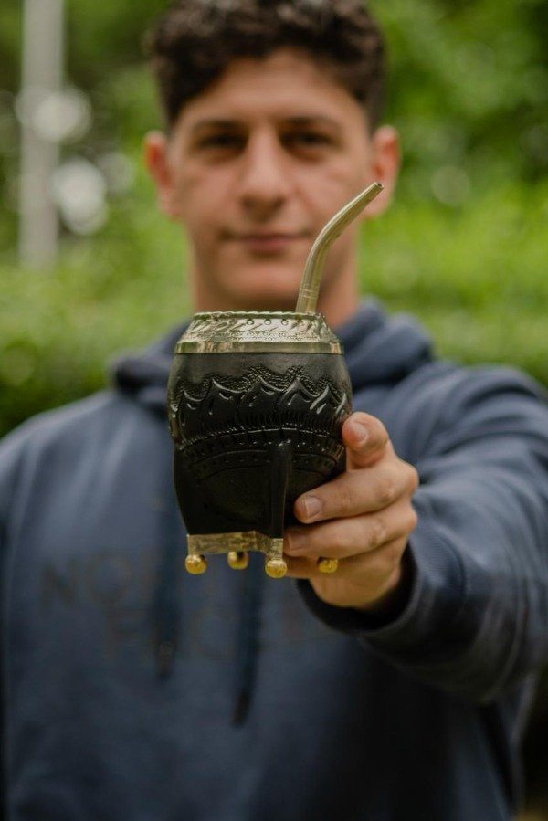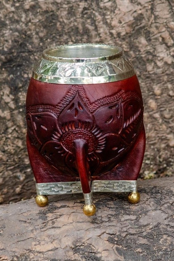 Con forma torpedo, está forrado en cuero repujado color Negro, lo que le da un estilo único y distinguido. Ideal para quienes valoran los detalles y disfrutan de un buen mate.