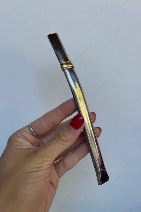 esta bombilla combina funcionalidad y diseño. Fabricada en acero inoxidable, con pico curvo para un cebado más cómodo y un anillo de bronce que aporta un toque elegante y distintivo.