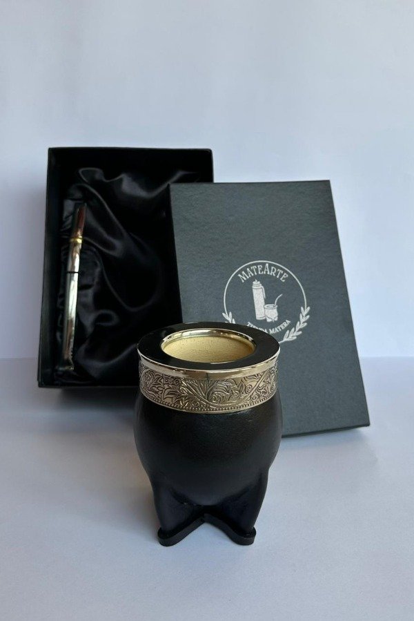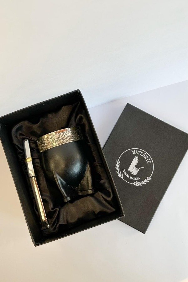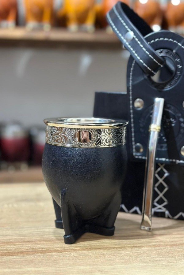 Elegante y clásico, este mate imperial combina la sobriedad del cuero negro con la distinción de una virola lisa. Su interior de calabaza asegura el sabor auténtico de cada cebada, mientras que su diseño robusto y refinado lo convierte en el compañero ideal para quienes disfrutan del mate con estilo.